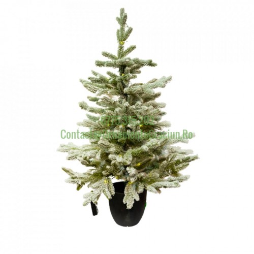 Brad artificial cu zapada si instalatie led, lumina calda, in ghiveci,