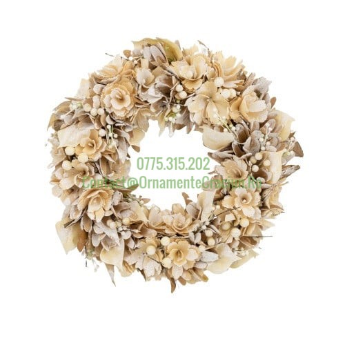 Etichete: Decoratiune Craciun- Coronita, culoare: crem. Dimensiuni : 43*43*9cm-HB-209