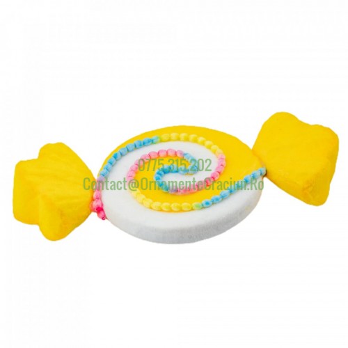 Etichete: Decoratiune brad in forma de bomboana, culoare galben, dimensiune: 65x9.5x32 cm, MI-644