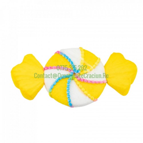 Etichete: Decoratiune brad in forma de bomboana, culoare galben, dimensiune: 65x9.5x32 cm, MI-645