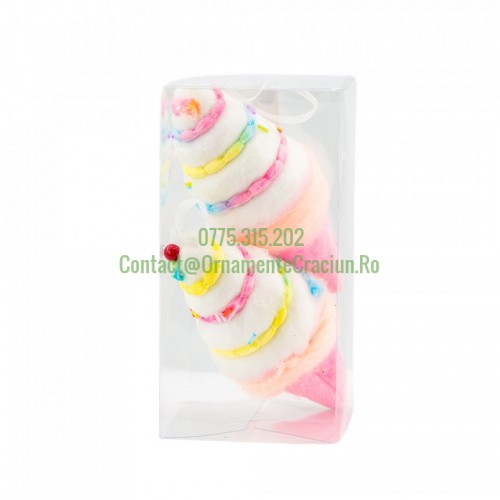 Detalii SKU MI-522Etichete: Decoratiune brad in forma de corn cu inghetata, culoare roz, dimensiune: 7.5x7.5x18.5cm, 2 buc/set, MI-522