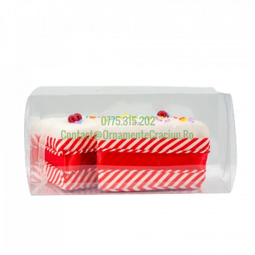 Detalii SKU MI-578Etichete: Decoratiune brad in forma de felie de tort, culoare alb cu rosu, dimensiune: 11x8.5x6.5cm, 2 buc/ set MI-578