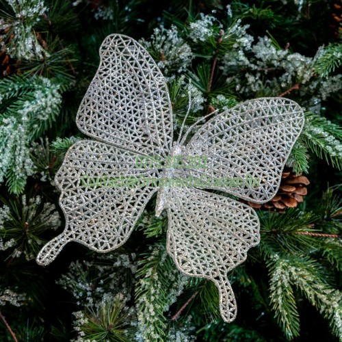 Decoratiune brad in forma de fluture, culoare argintiu, dimensiune 18*21cm, BL-6014S