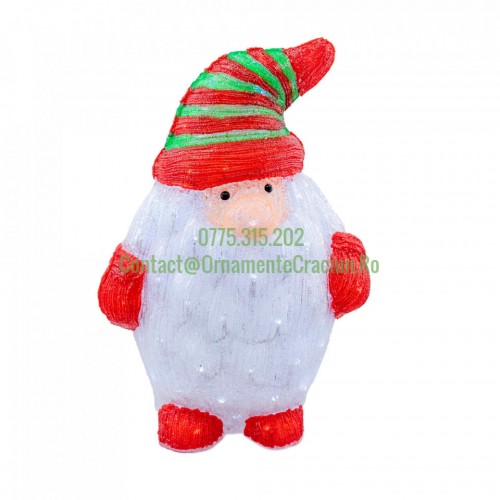 Decoratiune de exterior cu lumini, din acril, Gnom, 96 led-uri lumina rece, dimensiune 65cm, 8 jocuri de lumini, HB-205-2023