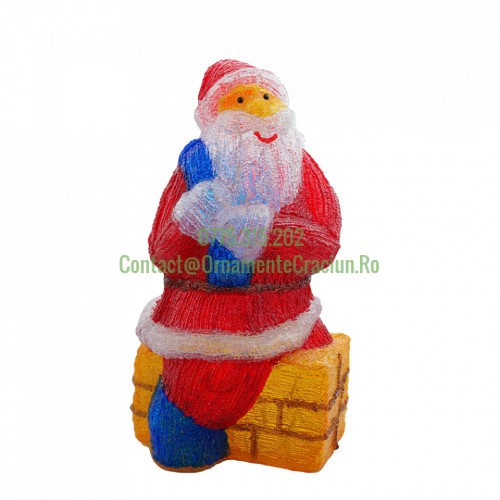 Etichete: Decoratiune de exterior cu lumini, Mos Craciun pe horn din acril, 144 Led-uri, dimensiune produs 60cm, 8 jocuri de lumini, cablu de alimentare 3m