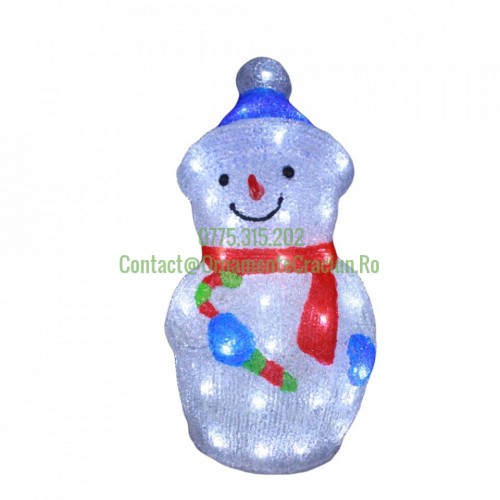 Etichete: Decoratiune de exterior cu lumini, Om de zapada din acril, 50 Led-uri, dimensiune produs 45cm, 8 jocuri de lumini, cablu de alimentare 3m