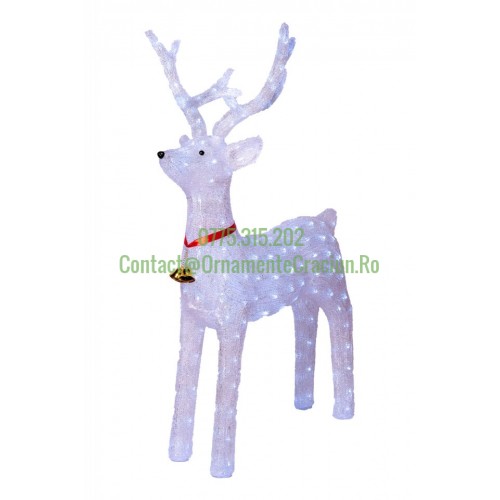 Decoratiune de exterior cu lumini Ren din acril cu instalatie de lumini , dimensiune 130cm, 8 jocuri de lumini, cablu de alimentare 3m, culoare alb, HB-1100