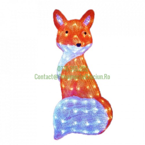 Etichete: Decoratiune de exterior cu lumini, Vulpea cea Sireata din acril, 144 Led-uri, dimensiune produs 60cm, 8 jocuri de lumini, cablu de alimentare 3m