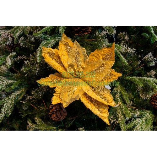 Decoratiune pentru brad in forma de floare, culoare auriu, dimensiune 25x 15 cm, HB-511