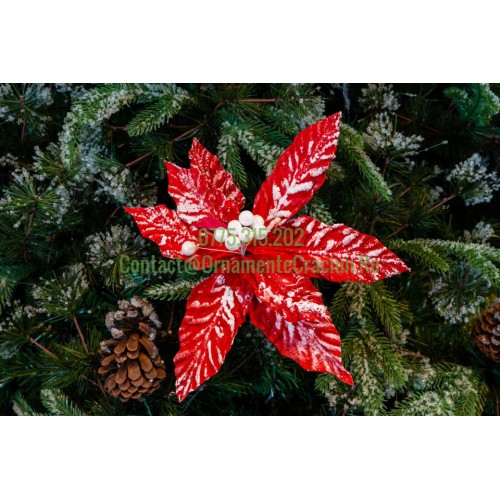 Decoratiune pentru brad in forma de floare, culoare rosu, dimensiune 27x 15 cm, HB-513