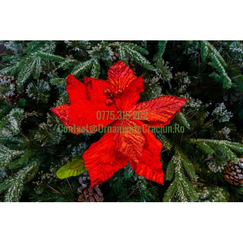 Detalii SKU Descriere Decoratiune pentru brad in forma de floare, culoare rosu, dimensiune 29x 31x15 cm, HB-515 ..