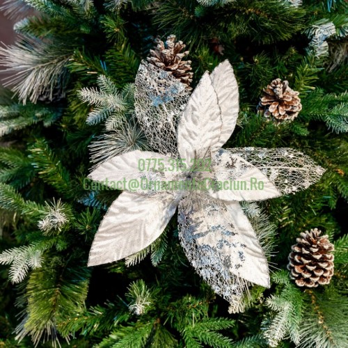 Detalii SKU MI-1079Etichete: Decoratiune pentru brad in forma de floare, culoare argintiu, dimensiune 40 cm, MI-1079