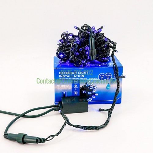Instalatie Lumini de exterior, fir 100 Led- Albastru 10m, interconectabila