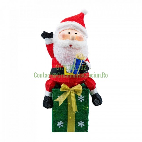 Etichete: Mos Craciun pe cadru de sarma cu material textil si leduri, dimensiune 40x25x85 cm, 50 led-uri lumina calda, cu jocuri de lumini, alimentare la priza, MI-705