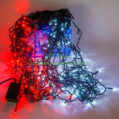 Cluloare: Lumina Alb Rece si Rosu. Led-uri : 360. Mufa de imbinare, cutie cu jocuri de lumini.