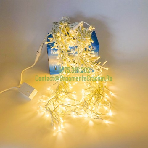 Perdea franjuri lumini de exterior 360 Led-uri, Lumina CALDA, 5m L, Interconectabila cu joc de lumini