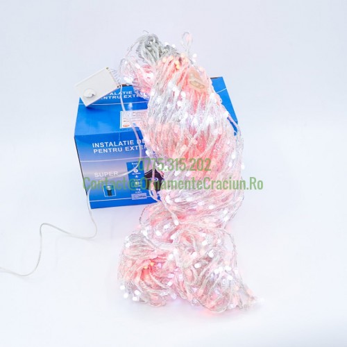 Perdea franjuri lumini de exterior 360 Led-uri, Lumina CALDA, 5m L, Interconectabila cu joc de lumini