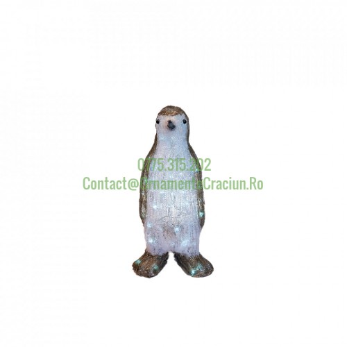 Pinguin decoratiune luminoasa de exterior din acril cu 80 led-uri, 8 jocuri de lumini, culoare alb, dimensiune 43 cm, alimentare la priza,